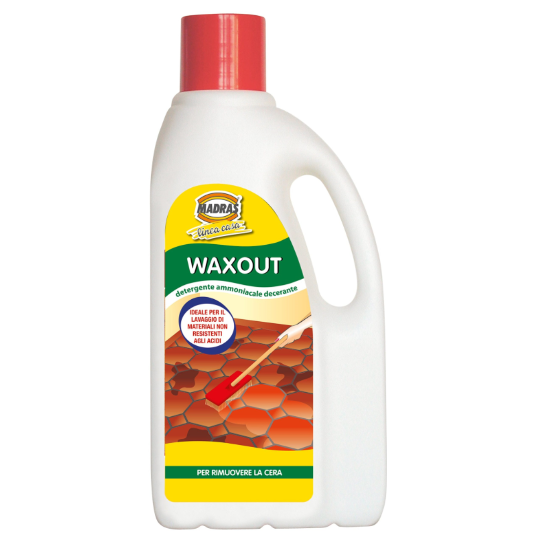 WAXOUT FORTE è il decerante per sciogliere e asportare cere naturali e sintetiche, cere siliconiche ed in pasta, cere metallizzate e resine acriliche all’acqua, cere miste ad olio di lino (utilizzate nel trattamento del cotto e di manufatti) per riportare le superfici grezze e porose. WAXOUT FORTE è ideale per asportare isolanti di posa provvisori (ISOLCOTT) e protettivi cerosi antigraffio, usati per proteggere i manufatti nell’imballaggio e durante il trasporto.