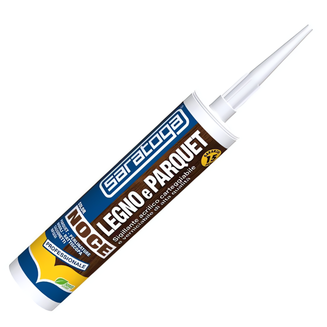 Sigillante acrilico monocomponente duro-elastico in dispersione acquosa di alta qualità con ottima resistenza agli agenti atmosferici, quindi idooneo all'uso sia in interno che in esterno. Viene utilizzato per la sigillatura di parquet e superfici in legno quali cassonetti, infissi, battiscopa, crepe e fessure nei mobili. Ottima adesione anche sulla muratura per il quale trova uso nella sigillaturae stuccatura delle crepe. Peò essere utilizzato anche come adesivo per la posa di parquet, perlinature e battiscopa.Le varie tonalità cromatiche si adattano perfettamente ai vari tipi di legno di più largo consumo del mercato.