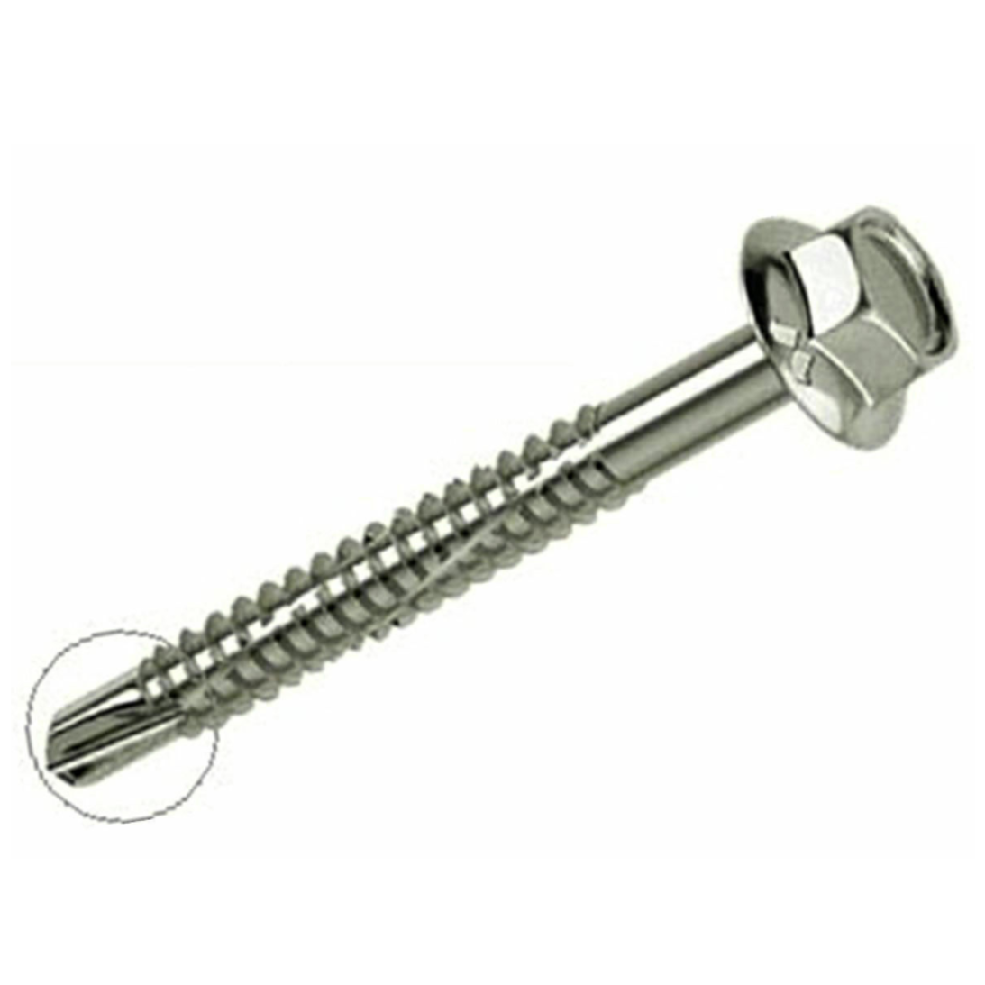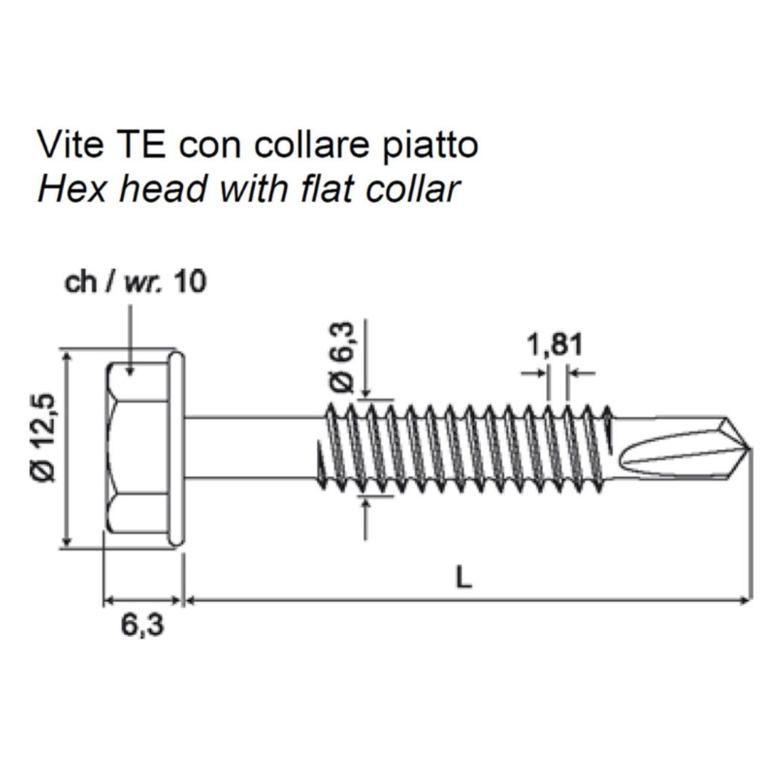 Vite autoperforante a testa esagonale in acciaio cementato e collare piatto.