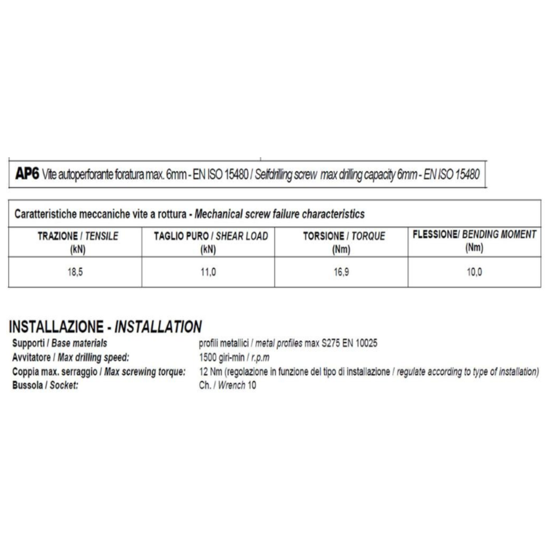 VITE AUTOPERFORANTE per lamiera FRIULSIDER mm 70